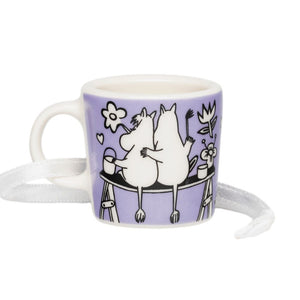 The 12-millilitre mugs are mini-sized reproductions of the beloved Moomin mugs. The minimug features Snorkmaiden and Moomintroll hugging. The two like to play and spend time together. But their relationship is also romantic. Moomin Arabia minimug Love purple. Comes in gift boxes. Material: vitroporcelain. Machine washable, oven and microwave-safe. Designed in Finland. Made in Thailand.