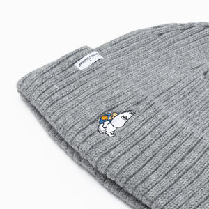 Stylish and soft Moomintroll beanie in grey. Guaranteed to keep your ears warm in a Moominous way!