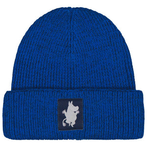 A literally shining beanie, which makes you visible 360°. The beanie is woven with reflecting yarn all over. Inside a warm microfleece lining. A happy Moomintroll dancing in the front and the Luminary - Moomin logo as a tag in the back seam. The outlines of the Moomintroll and the logo text are sewn with silver thread.