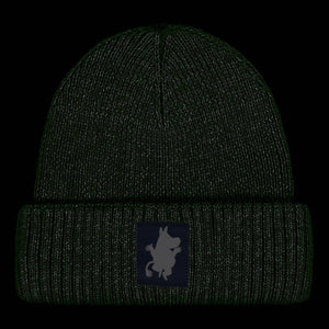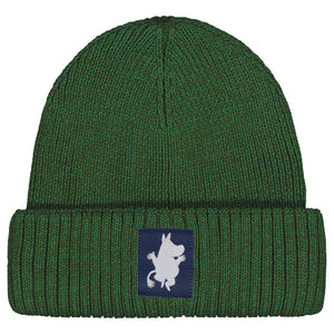 A literally shining beanie, which makes you visible 360°. The beanie is woven with reflecting yarn all over. Inside a warm microfleece lining. A happy Moomintroll dancing in the front and the Luminary - Moomin logo as a tag in the back seam. The outlines of the Moomintroll and the logo text are sewn with silver thread.