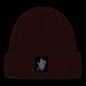 A literally shining beanie, which makes you visible 360°. The beanie is woven with reflecting yarn all over. Inside a warm microfleece lining. A happy Moomintroll dancing in the front and the Luminary - Moomin logo as a tag in the back seam. The outlines of the Moomintroll and the logo text are sewn with silver thread.