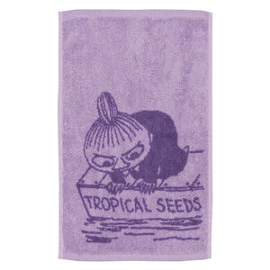 Enjoy the soft cosiness of a purple Moomin towel featuring the fiery Little My. Moomin Arabia hand towel 30x50 Little My purple, GOTS.