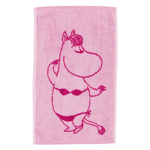 Enjoy the softness of a pink Moomin hand towel featuring the romantic Snorkmaiden. Moomin Arabia hand towel 30x50 Snorkmaiden pink, GOTS.