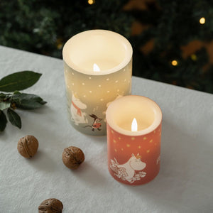 Skapa en mysig stämning med Moomin Originals Led-ljus. Muurlas LED-ljus är designade för att visa och framhäva de tryckta konstverken. Med en varm nyans av ljus skapar ljusen en mysig ljusstyrka och ger de omsorgsfullt utformade motiven den uppmärksamhet de förtjänar. Ljusen är tillverkade för att likna klassiska stearinljus.