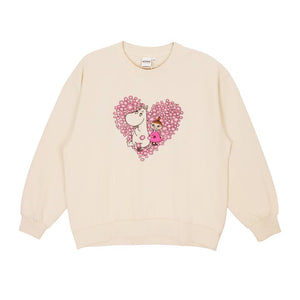 A comfortable Moomin sweatshirt for women. Loose fit with long sleeves, round neckline and cute print on front. Made from french cotton fabric with loop back. Length from shoulder to hem in size S is 62 cm.