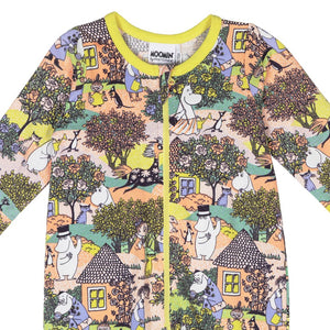 Soft and comfortable Moomin pyjamas for babies. The pyjamas has long sleeves and a long zipper for easy dressing and diaper change. The pyjamas is made with certified organic cotton blend.