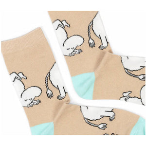 Adorable socks with a happy Moomintroll. Size: One size fits most UK 3-8 / EU 36-42. Material: 75% Cotton, 23% Polyester, 2% Elastane. Machine wash at 40°C.