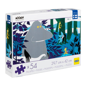 A 54-piece puzzle in which the icy cold Groke is walking in a dark forest. The size of the finished puzzle is 42 x 30 cm. Made in Finland from recycled cardboard. Size 16 x 22 x 4,5 cm. Perfect for Moomin fans!