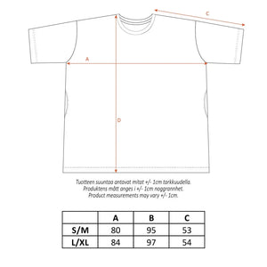 A comfortable Moomin giant tee for women featuring Little My. The oversized sleep shirt has short sleeves, round neckline and pockets. Shoulder to hem length in size S/M is 95 cm. Material: 100% cotton. Washing instructions: 40°C – Wash inside out with similar colours; do not tumble dry; iron on the reverse side. Sweet dreams!