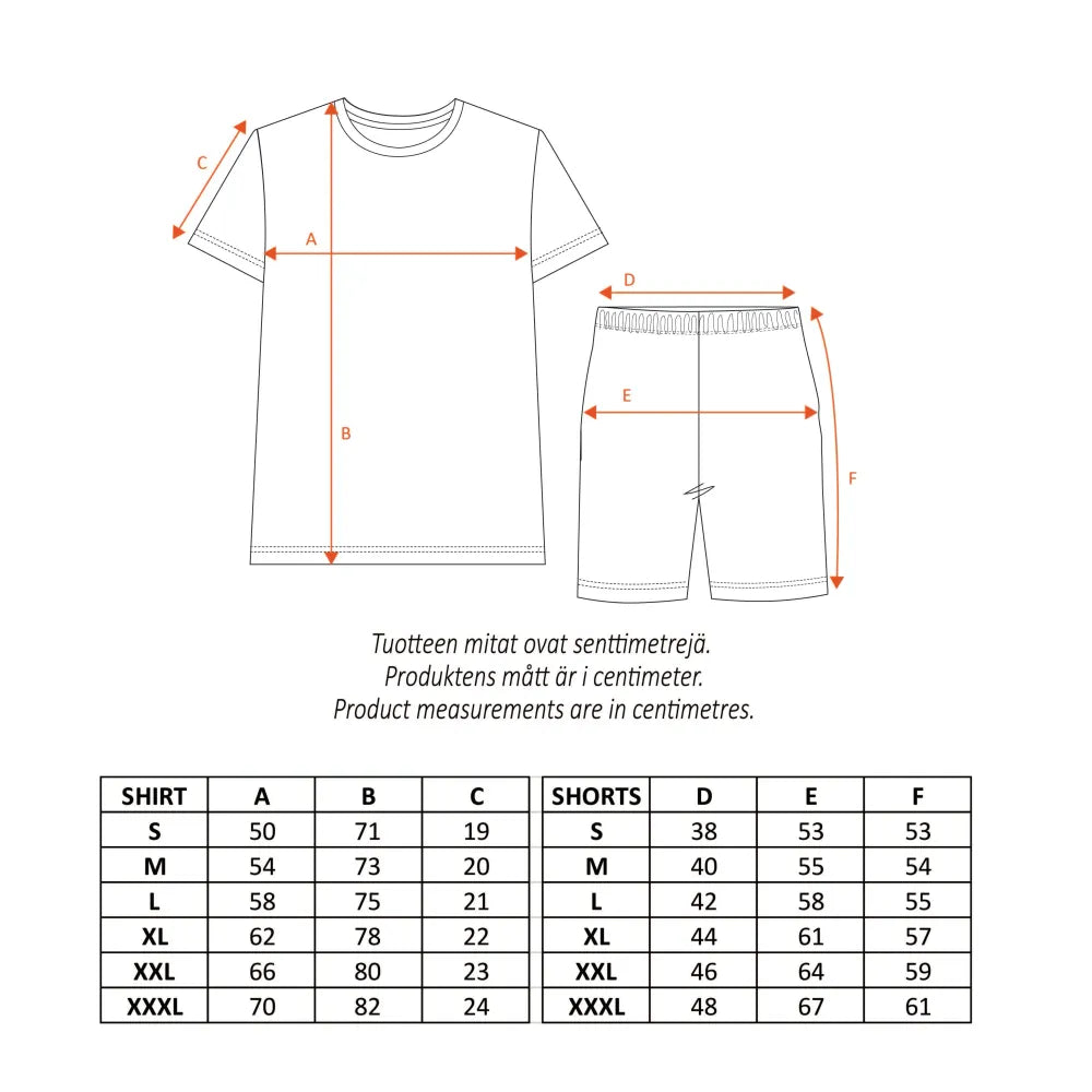 Soft and comfortable Moomin shortspyjamas for men featuring angry Moomintroll. The shirt has short sleeves and a round neckline. The shorts have an elastic waistband. Made from soft cotton. 40 °C – Wash inside out with similar colours; do not tumble dry; iron on the reverse side. Sweet dreams!