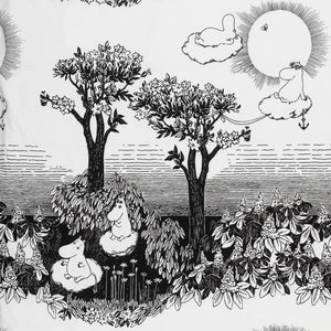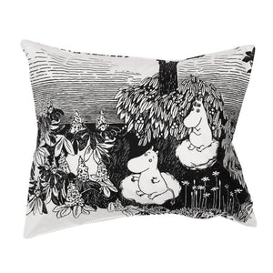 Enjoy sweet dreams with a Moomin pillowcase. The Dreaming illustration is based on Tove Jansson's original drawings from the Moomin book "Finn Family Moomintroll."  The pattern replicates the book's illustrations and is kept in black and white to honour the original. colourless novel illustrations.