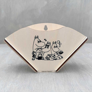 A stylish and functional Moomin coffee filter holder featuring Moomin family from Kainor made from natural Finnish birch plywood. The holder is easy to assemble, sturdy, and versatile – mount it on the wall, attach it to a cabinet, or place it on your table. It can also be used as a napkin holder. The holder fits approximately 100 pcs of size 1x4 coffee filters.