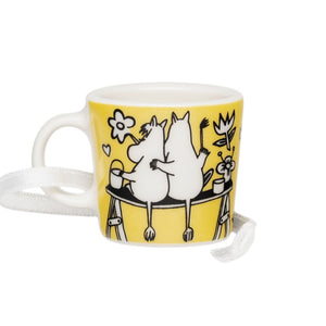 The 12-millilitre mugs are mini-sized reproductions of the beloved Moomin mugs. The minimug features Snorkmaiden and Moomintroll hugging. The two like to play and spend time together. But their relationship is also romantic. Moomin Arabia minimug Love yellow. Material: vitroporcelain. Machine washable, oven and microwave-safe. Designed in Finland. Made in Thailand.