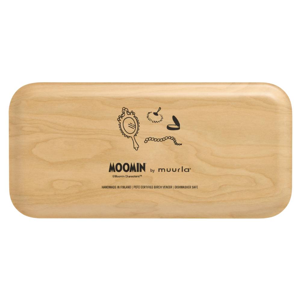 Snorkmaiden tray in size 27x13 cm. Moomin by Muurla Retro trays are full of colors and joy. For each of the 27x13cm trays of this collection, there is a matching 2.5 dl enamel mug. The 27x13cm serving tray is small, but not too small! It is just perfect for a cup of coffee with a cinnamon bun on the side, or a glass of lemonade and some cookies. All Muurla trays are handmade in Finland out of birch plywood, with protective lamination. Dishwasher safe.
