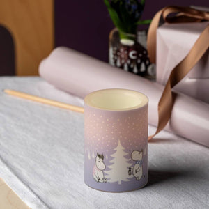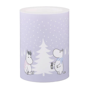 Muurla's LED candles are designed to highlight the Moomin artworks. Using a warm, flickering light, the candles create a cozy atmosphere, giving their carefully crafted designs the attention they deserve. Battery powered with AA batteries, 2 pcs. Batteries are not included. On-Off -Timer switch, timer for 6 hours. For indoor use only. The product is not suitable as a lighting solution and should only be used as a decoration. CE marked. Ø 7,5 cm / h 10 cm.