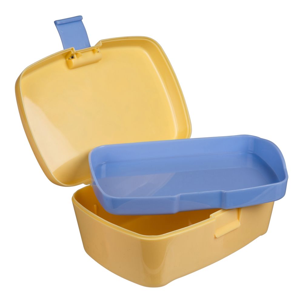 A yellow Moomin lunch-box in BPA-free PP-plastic. The print on this lunch box features the Moomin characters spending a carefree day at the beach. Inside the lunch box is a practical divider. Have a nice beach day!