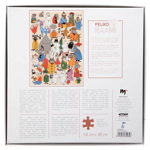 A 1000 piece puzzle with a picture of the beloved Moomin characters. The size of the finished puzzle is 68 x 48 cm. Peliko puzzles are made in Finland from recycled cardboard, with electricity produced by solar energy. Includes the Peliko Raami puzzle building pad, which makes it easy to build and frame the picture in any standard 50 x 70 cm frame. Box 27 x 27 x 5,5 cm.