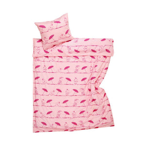This beautiful bed set includes a duvet cover 150x210cm and a pillow case 50x60cm. A separate pillowcase is also available for all patterns. Openings for hands in the upper corners of the duvet cover. Material: Organic cotton 100%, GOTS. Machine wash with similar colours inside out at 60°C. Wash the product before use. Shrinkage max 5%. Designed in Finland and made in Turkey.