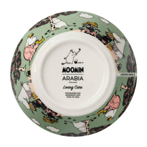 The Loving Care bowl's illustration embodies the spirit of the Moomin family where love and care are extended to all beings in Moominvalley. The illustration shows a heart-warming adventure where a picnic turns into a daring rescue as the Moomins save shipwrecked travelers. Moomin Arabia plate, 15cm. Material: vitroporcelain. Machine washable, oven and microwave safe. Designed in Finland. Made in Thailand.