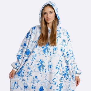 En enorm, fluffig luva, som håller ditt huvud gosigt och kan till och med fungera som en kudde. En stora framficka, som håller dina händer varma samtidigt som du kan förvara alla dina tillhörigheter. Den överdimensionerade ärmar är designade så att du enkelt kan täcka dina armar för den maximala mysfaktorn.