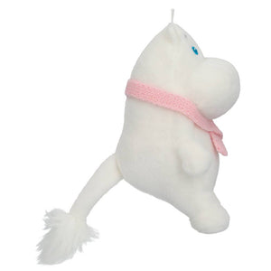 A lovely soft little Pink Ribbon Moomintroll plush toy with a pink scarf. Height 17 cm. It has a small loop on top of the head, so that it can be hung for example on the backpack. Hand wash. 10 % of the sales price is donated to the Cancer Foundation's Pink Ribbon campaign.