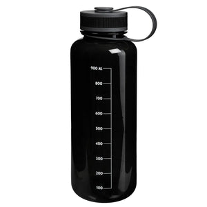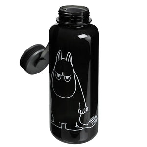 A black water bottle with a Moomin-print in white. The angry Moomintroll will make sure to brighten up your day. The bottle features a scale so that you easily can follow up on your water consumption. The inside of the bottle has a practical, removable insert that makes it easier to drink from. Made out of stong tritan plastic and the lid is PP-plastic and silicone. BPA free. Volume 1 liter. Size 11 X 26 X 9 cm.