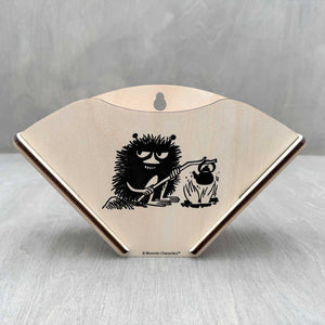 A stylish and functional Moomin coffee filter holder featuring Stinky from Kainor made from natural Finnish birch plywood. The holder is easy to assemble, sturdy, and versatile – mount it on the wall, attach it to a cabinet, or place it on your table. It can also be used as a napkin holder. The holder fits approximately 100 pcs of size 1x4 coffee filters.