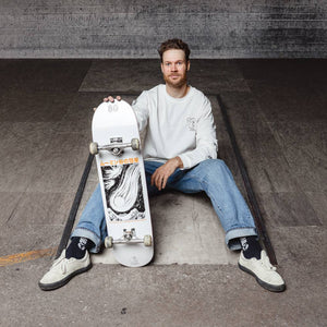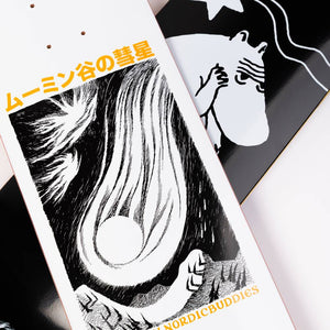 Novels Collection Skateboard The Comet. Width 8,5" / Length 31,956" / Wheelbase 14,2". Material: 100% US Hard Rock Maple 7 ply. Made in Spain / Designed in Finland.