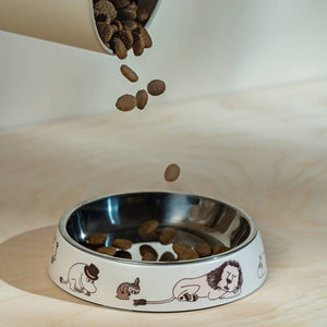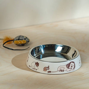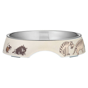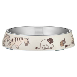 This shallow, whisker-friendly Moomin food bowl is specially designed for the cats. The bowl features a removable stainless steel inner part and a durable melamine outer shell, both dishwasher safe. Non-slip rubber pieces on the bottom keep the bowl steady during mealtime. Melamine outer bowl and steel inner bowl. Rubber stoppers at the bottom. Dishwasher safe. Size Ø 15,5 cm / h 3 cm.