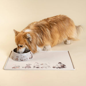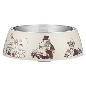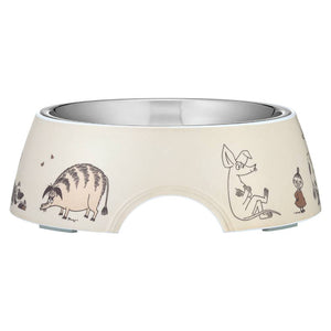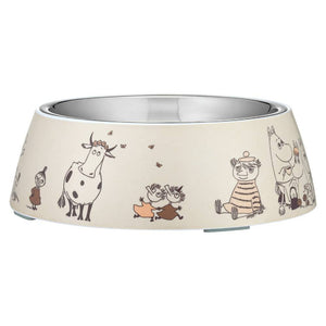 This size is perfect for Beagles, Cocker Spaniels, and other medium breeds. Plenty of room for dry or wet food. The Moomin bowl features a removable stainless steel inner part and a durable melamine outer shell, both dishwasher safe. Non-slip rubber pieces on the bottom keep the bowl steady during mealtime. Melamine outer bowl and steel inner bowl. Rubber stoppers at the bottom. Dishwasher safe. Size 325ml / Ø 17,5 cm / h 5,5 cm.