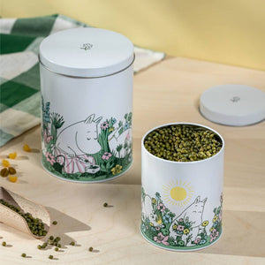 This set of two round tins is great for the kitchen – ideal for dry goods and treats – and just as handy for storing craft supplies or office essentials. Food-safe for dry foodstuffs only. Colours may fade; keep out of direct sunlight. Wash before use. Handwash only. Dry carefully. Size 9 x 14 cm / 11 x 17 cm.
