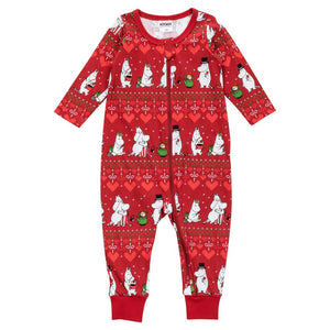 Soft and comfortable Moomin Christmas pyjamas for babies. With long sleeves and long zipper for easy dressing and diaper change. Made from cotton.